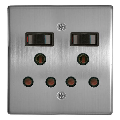 ACDC 2x16A Switched Socket Outlet 4x4 Steel Plate