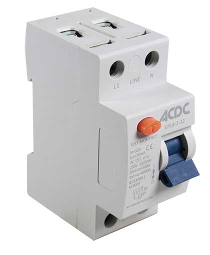 ACDC 63AMP 30mA 2P DIN RCD No Overload