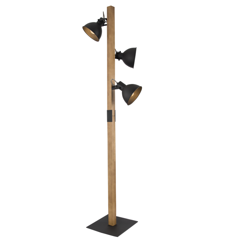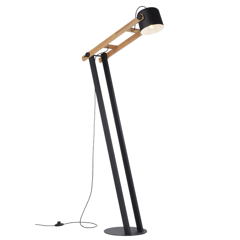 Bright Star Metal and Wood Standing Lamp with Black Fabric Shade